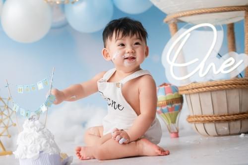 這是寶寶人生第一個真正屬於自己的生日派對!我們特別設計Cake Smash環節,讓寶寶可以毫無顧忌地用小手抓蛋糕、抹在臉上、甚至整臉埋進去,盡情享受這份甜蜜的快樂與混亂。
