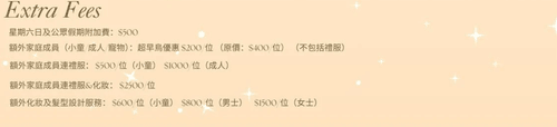 額外家庭成員(小童/成人寵物)*(不包括禮服)